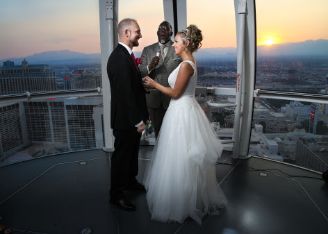 Der High Roller ist das größte Riesenrad der Welt und ideal für einzigartige Momente, die Paare und ihre Gäste für immer in Erinnerung behalten. Das Riesenrad liegt an der LINQ Promenade im Zentrum des weltberühmten Strips. In einer privaten Kabine für bis zu 40 Personen findet die 30-minütige Zeremonie statt. Das Highlight: die frisch vermählten küssen sich in knapp 170 Metern Höhe.